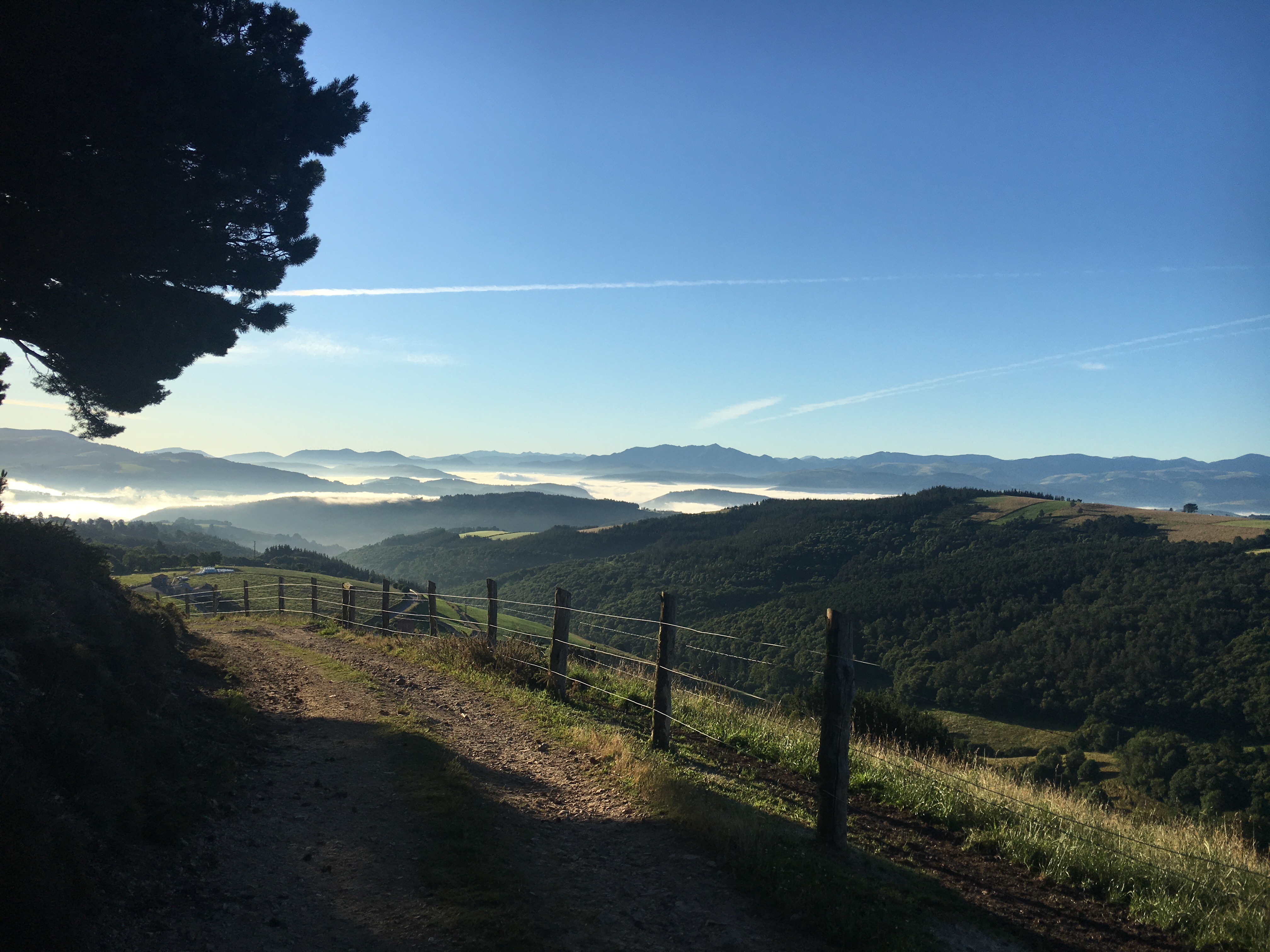 The albergue turned out to be exactly what I imagined for a Camino. The dormitory space had 24 of us in bunk beds, with boots and poles kept at the door. A number of us met at the bar for drinks before the communal dinner. The host was gracious to make special food for the three of us who are vegetarian and vegan Mandy. We had course after course along with lovely Spanish wine. Though the general practice is that it’s lights out and quiet at 10, one hiker had a small 6 string guitar and sat outside playing while a few others sang along. It was quite nice falling asleep to the muted sound of music. After my best night of sleep yet on the trail we got up at 5:30 along with most of the other hikers, ate a quick breakfast and took off, as this was most likely going to be one of the longest hikes and also the most strenuous.