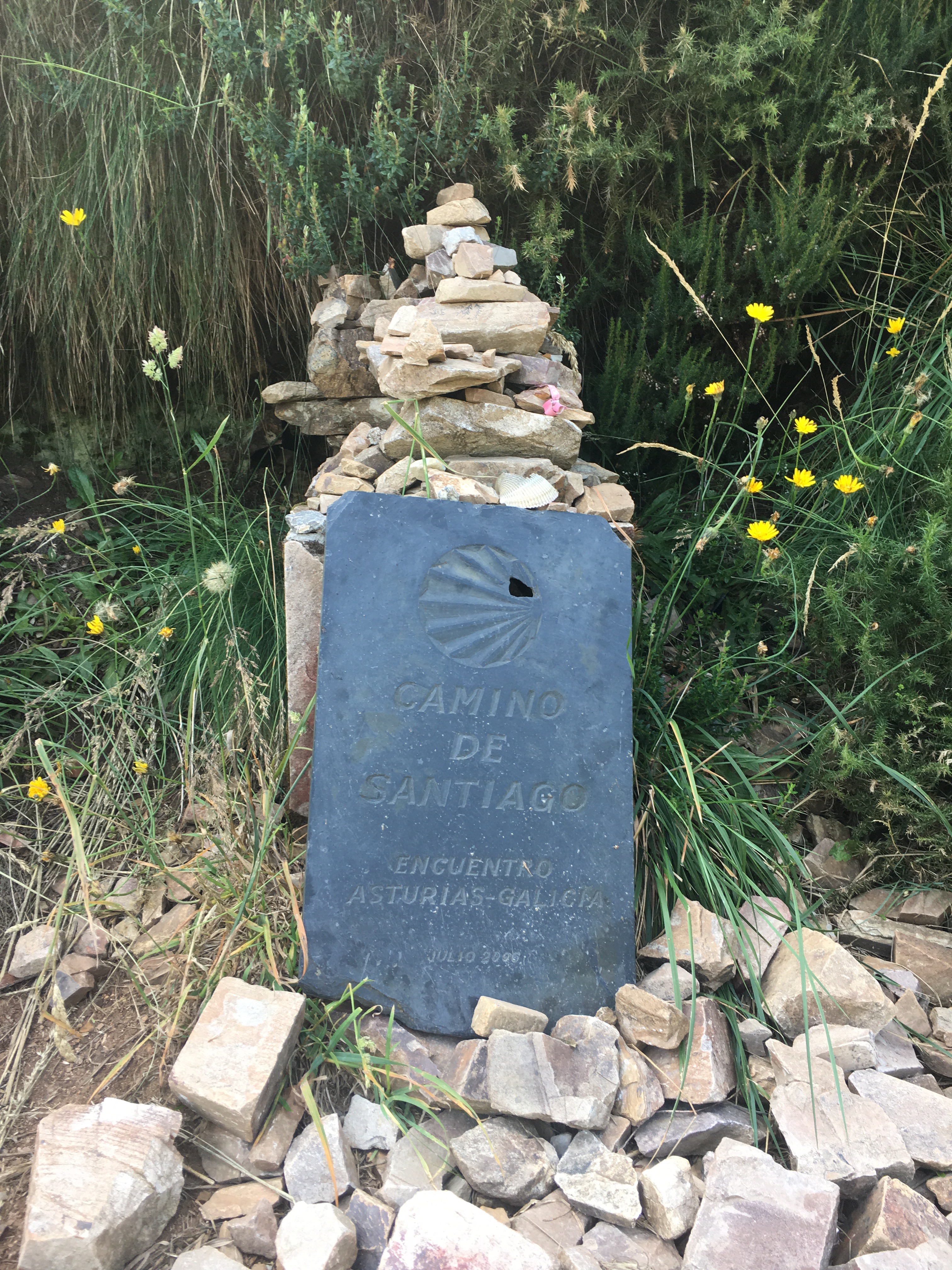 A fairly uneventful day, with a few hikers we’ve met crossing paths with us now and again. Always delightful to reach a small cafe to find others to chat with. We carried on until we reached the boundary of Asturias, then crossing into Galicia. That was the point where Mandy mentioned that the signs we follow would have us follow the shells in the opposite direction. Up till now we have been following the base of the shells and now we were to follow their top, at least that was how it was when Mandy hiked the Caminos before. Not so now, at least in this initial section as they’ve put very nice new markers in place but depending on which side of the path it’s on the shell is one way or the other. Now we just pay attention the arrows.