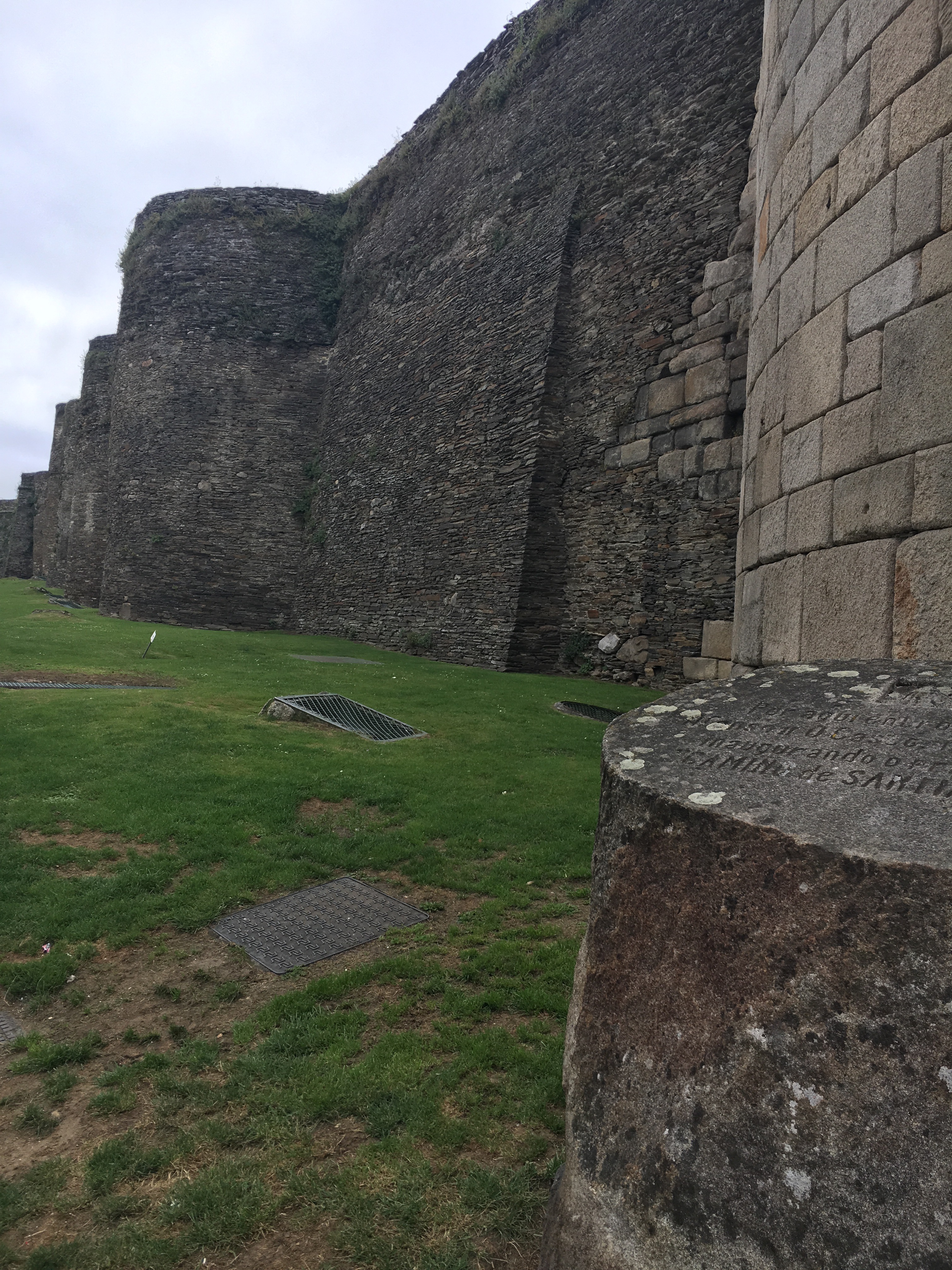 Eventually we made it to the city of Lugo, the largest city we’ve been in thus far. It has the center of town surrounded by a Roman wall from the 5th century. After walking around in circles a mite we finally found the pension we booked to stay in. Many of the albergues were full, so this was a real treat. A room with a shower to myself! A real towel! A hairdryer! Goodness, I hardly knew how to act.
