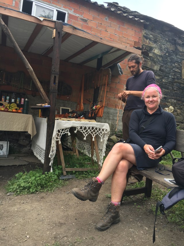 And finally we found our albergue at Ferreira. A delightful spot where we’re sitting outside having drinks awaiting dinner of paella.
