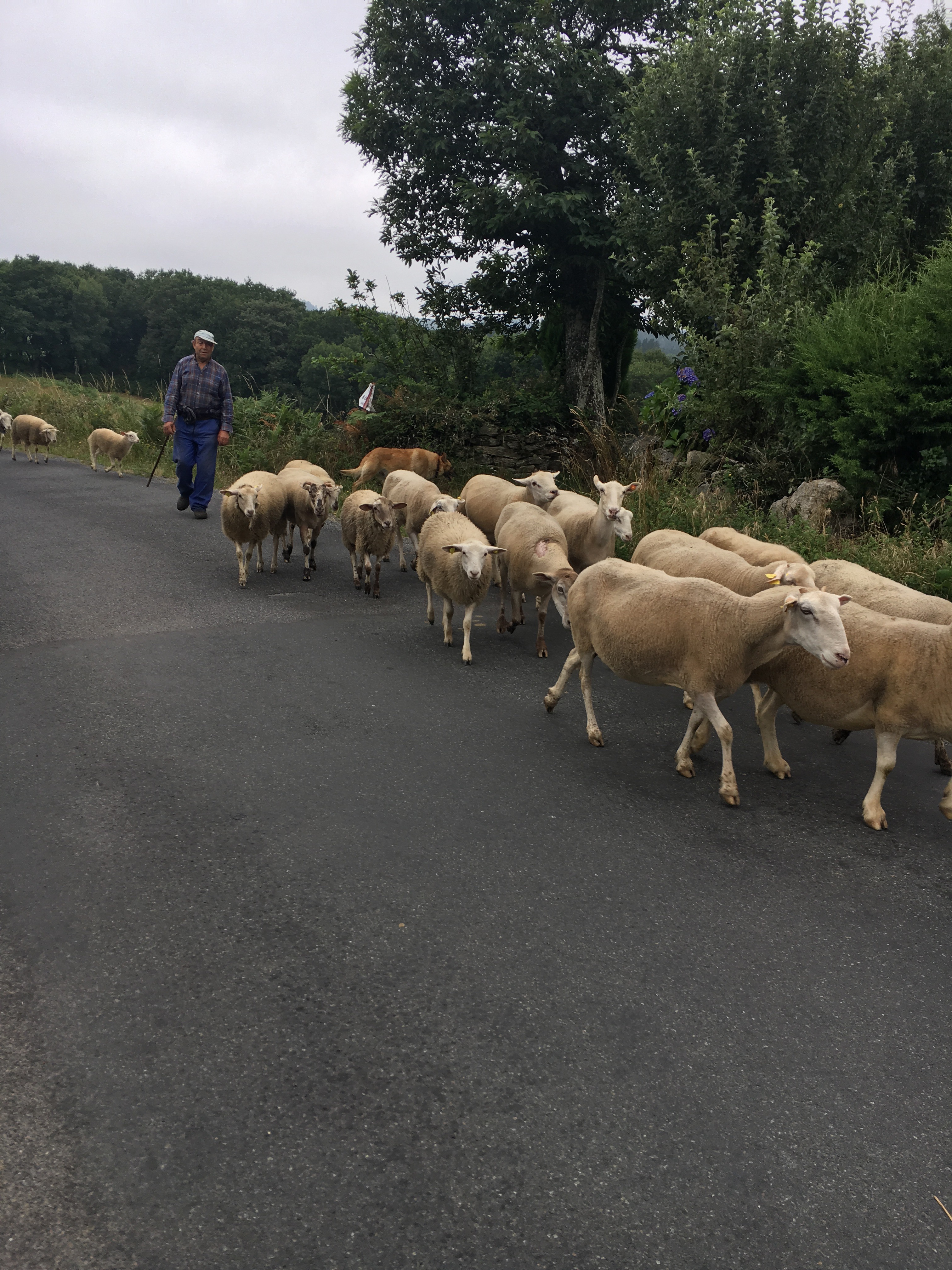 Next along was another older gentleman herding a bunch of sheep along with his dog on the road. We were amazed at how much more respectful drivers were of them than they are of pilgrims walking the road.