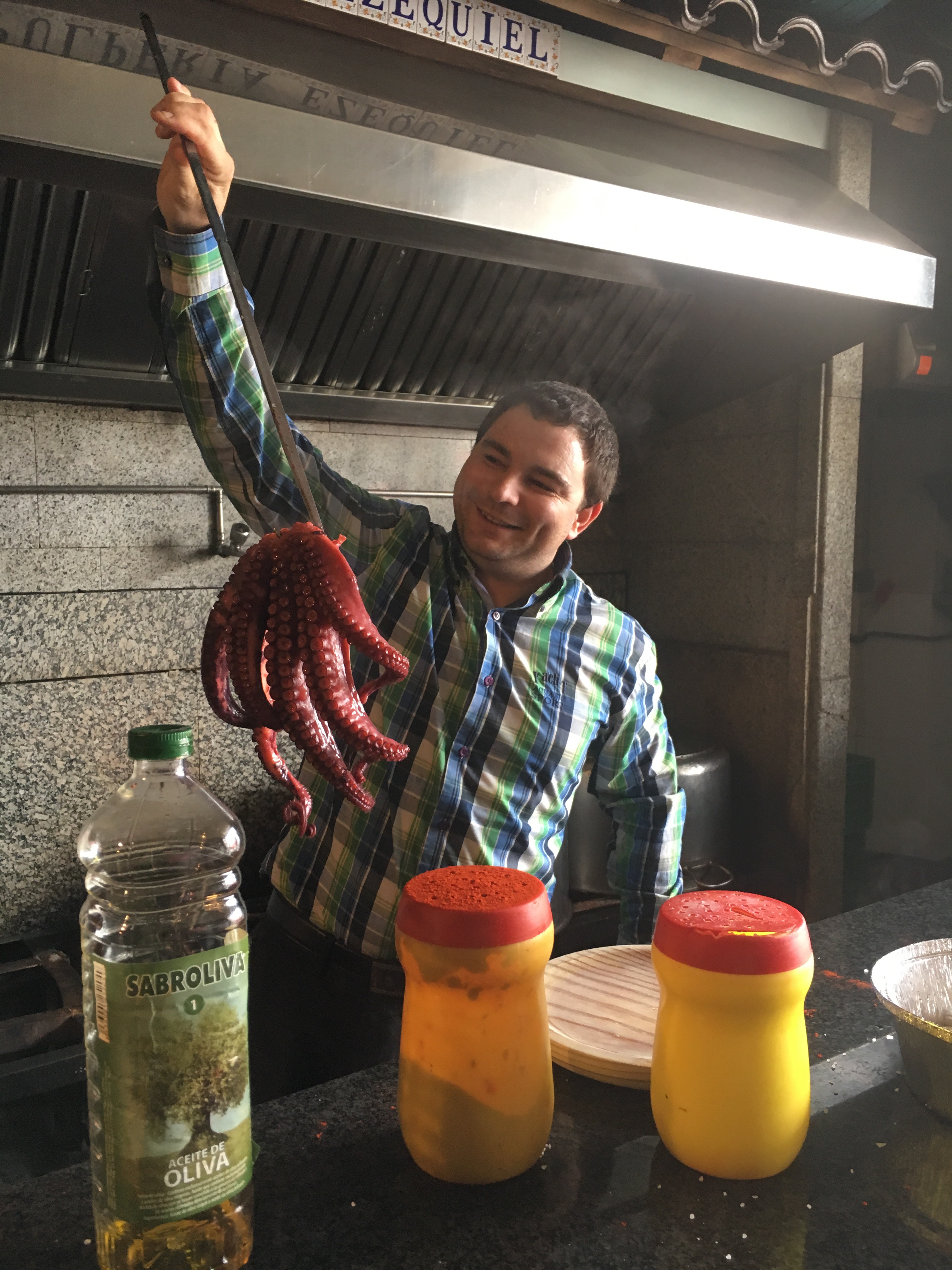 After our initial round of drinks at the bar closest to our albergue we headed out to find a market for food for the next day and for dinner. Simon had a relative recommend a Pulperia for the local specialty, pulpo. While it tasted fine, for me, having it once was enough. I did love the little salty, roasted peppers we also had. After eating we wandered back to sit in the albergue garden with a few bottles of wine to share. Three bottles disappeared in no time, so Simon and Mandy made a quick jaunt out for a few more. It was a late evening for us, with lots of talking, sharing of life stories and singing. Tony and Stephanie have the loveliest voices and many wonderful Irish songs.