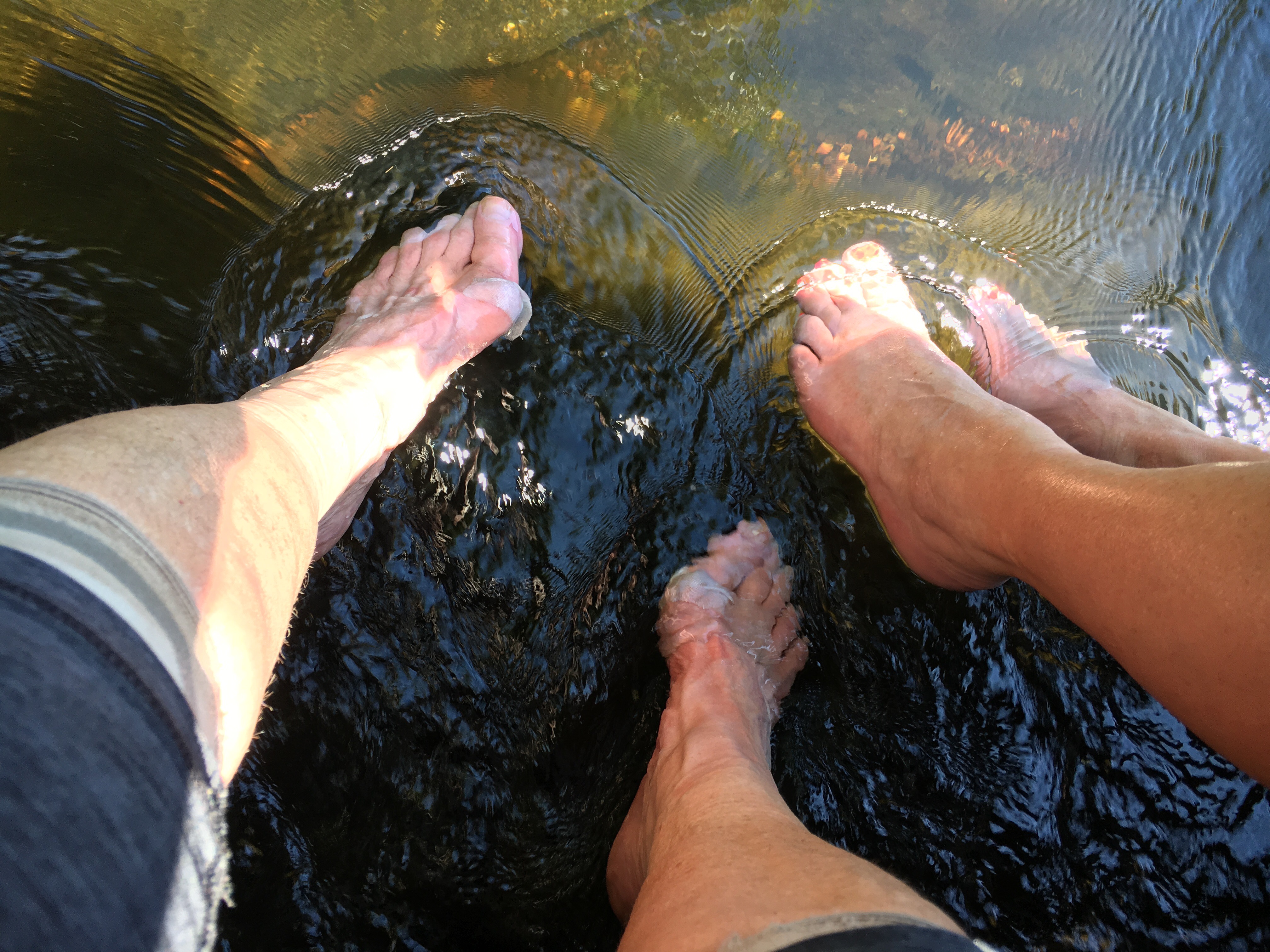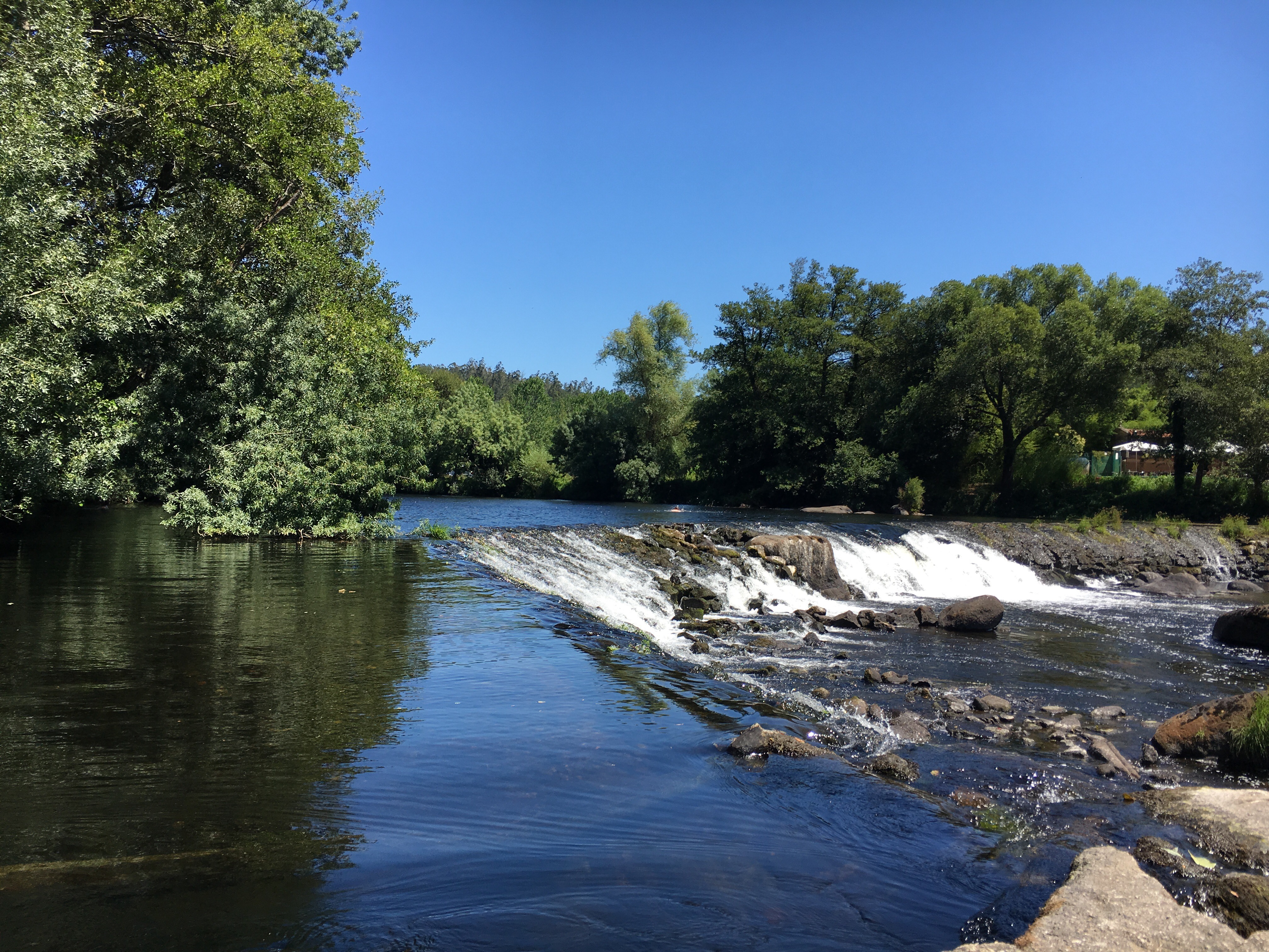And voilá! There it was – a beauty of a river, the Río Tambre, with a Roman style bridge over it, rapids, a rope swing and best of all for Stephanie and me, some lovely rocks in a shady area where we could cool our feet. Over the bridge we went, shoes and socks off, the young ones and brave Tony into the river via the rope and us ladies soaking our feet in the cool, running water. What heaven! My feet haven’t felt that good since we began. Eventually we had to pull them out and continue our saunter into Negreira. By that time Tillman had decided to head off on his own.