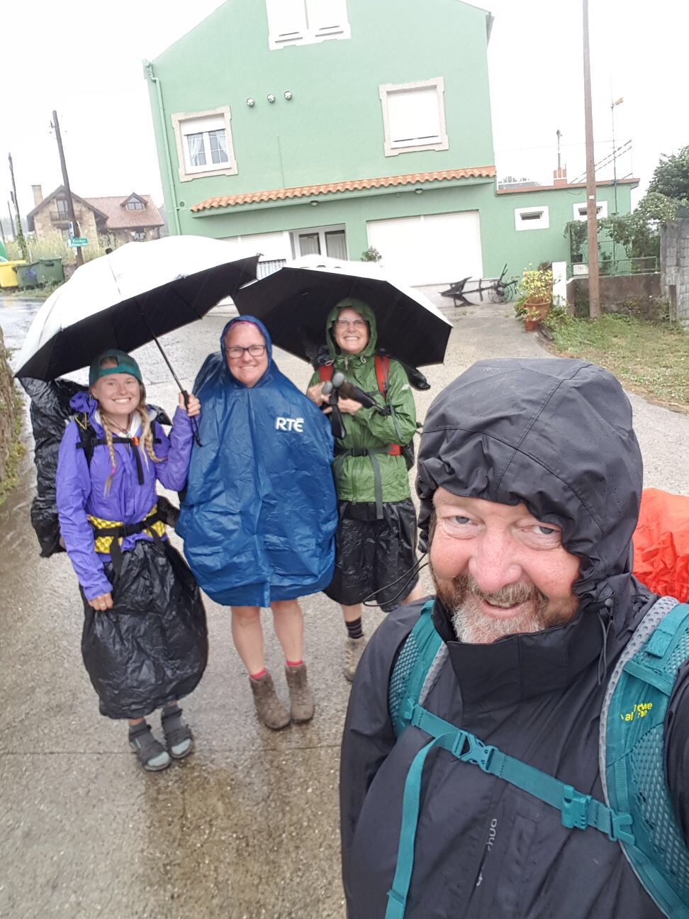 We had a good many pilgrims passing us the opposite way heading to Finisterre. I was charmed when two pilgrims started to sing “Singing in the rain” as I walked past with my umbrella up. I had to join in the song. As usual it was Mandy up ahead in the lead, followed by Tony and Stephanie and me pulling up the rear. I’m slow but steady. Getting stronger and more sure footed with each day. But it’s still reassuring that every now and again Mandy spins around to check how we’re all doing, then spins back around after a few backwards steps to carry on.