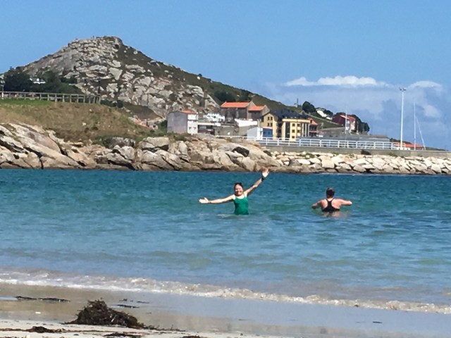 We strolled through town, had a coffee, found a little local craft event where I saw women not only knitting but making intricate bobbin lace. Not even I would attempt that, then to the beach for a dip in the Atlantic. Cold and brisk. I was the self-designated valuables watcher while the others took their dip. Good excuse for me to just wade. We then decided to have a big lunch, where I finally got to try the local Eel. Delicious. By then the food and heat of the day made us all drowsy so we determined that when in Spain…. So it was siesta time.