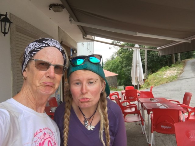 We stopped for coffee at the bar just off the path where the group stopped previously, with the owner who stated he had done the Camino on his horse. They were just as nice as before, but it seemed mighty lonesome without our Camino family with us. Hence the sad faces. Before we left the Portuguese hiker, who was the massive snorer in Dumbría, along with his companion, whom we dubbed Ghandi, showed up. They had also shown up last night at our albergue for dinner but fortunately were staying elsewhere. Therefore the better night’s sleep.