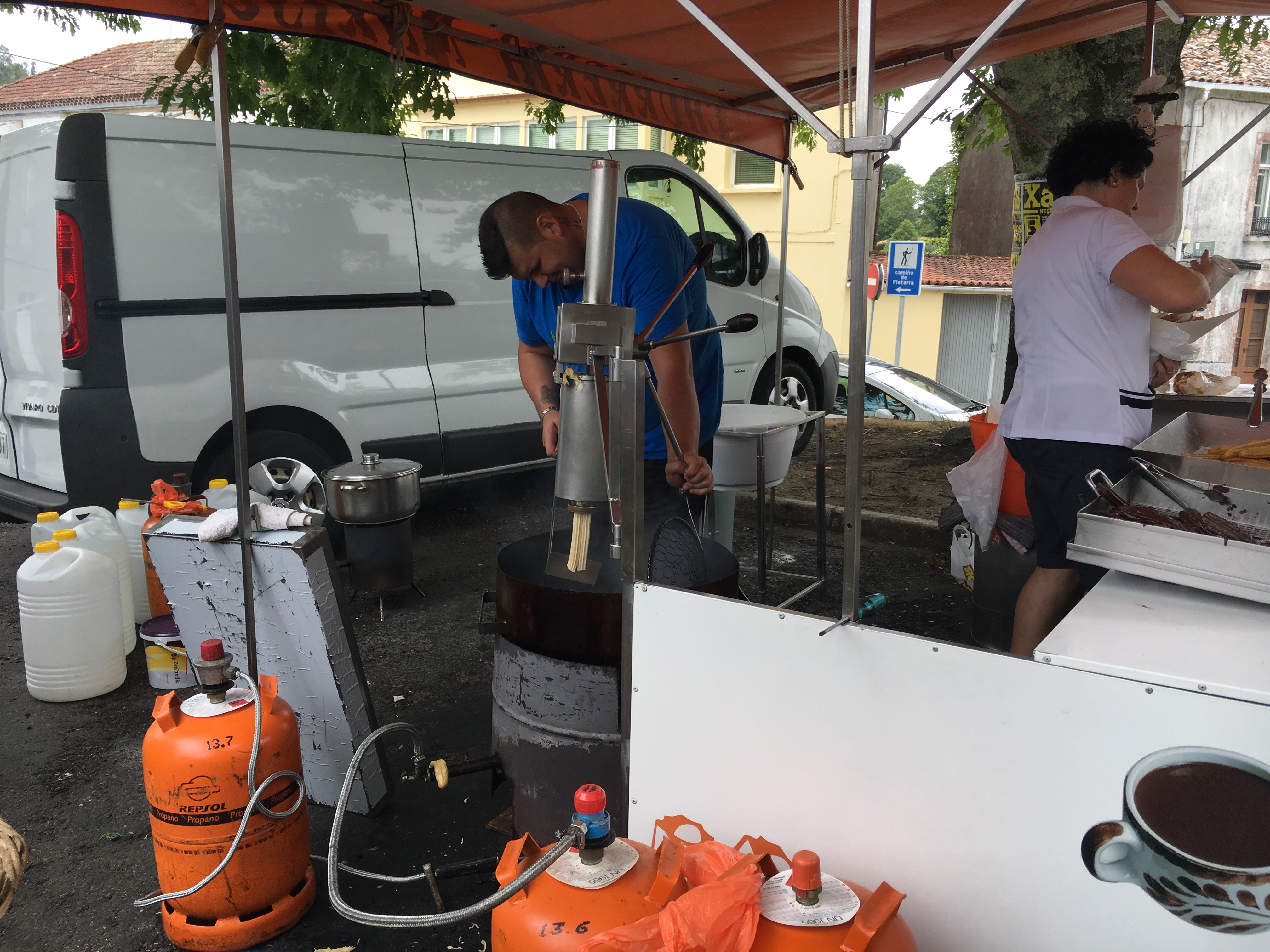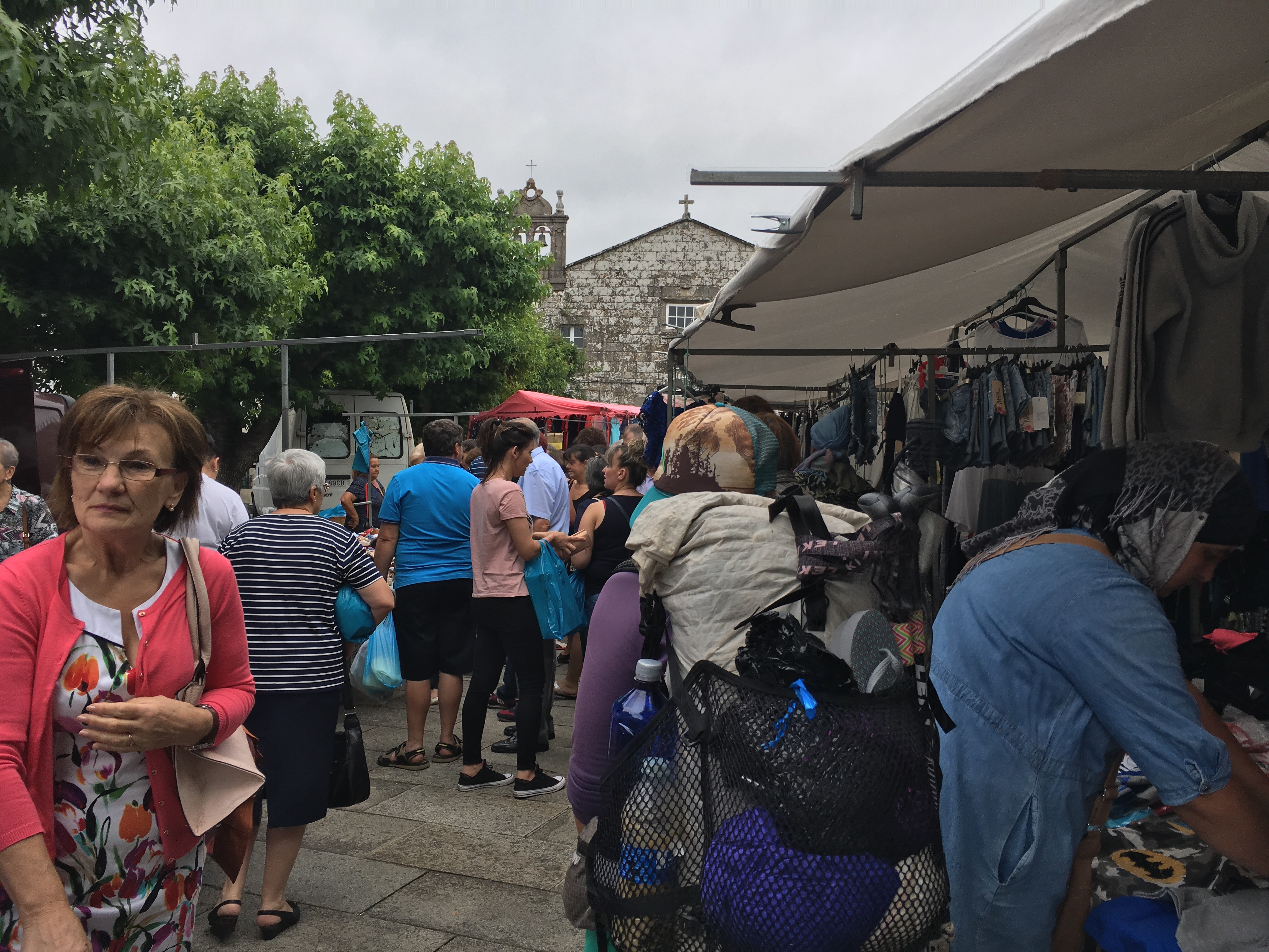But what a difference coming into Negreira than when we left. Previously the town seemed totally asleep with no one in sight, but today it was alive with activity as we came across a local market. Sort of a cross between a farmer’s market and a flea market. I found a pair of pants and a shirt for next to nothing that I could wear going home, since the few hiking clothes I have look dreadful and still don’t smell that great even after washing. Figure my fellow passengers might appreciate it. I also got my first taste of churros, both a plain and chocolate – delicious!