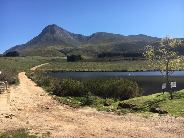 Up early again today to meet our guide, Thabo, who drove the three of us out from Cape Town toward the east across the mountains. We went through town, out into the area known as the Cape Flats, where we passed large township areas that are made up of very crude shacks cobbled together, some areas obviously with no utilities, some with power. But you can also see lager numbers of houses the country had been building over a number of years to move people out of the shacks and into better housing. It’s a huge undertaking. We continued to drive east heading into the mountains going through Sir Lowry’s Pass, then through the Houwhoek Pass, with amazing views of False Bay.