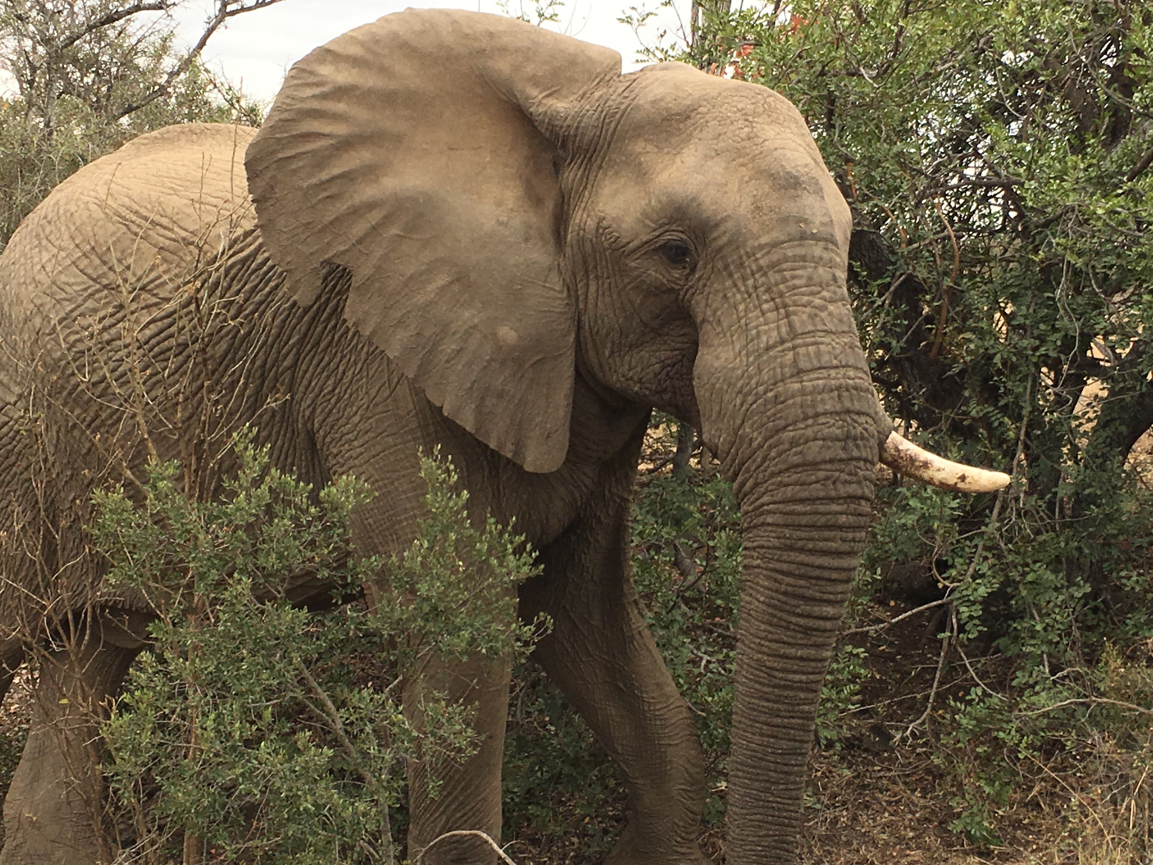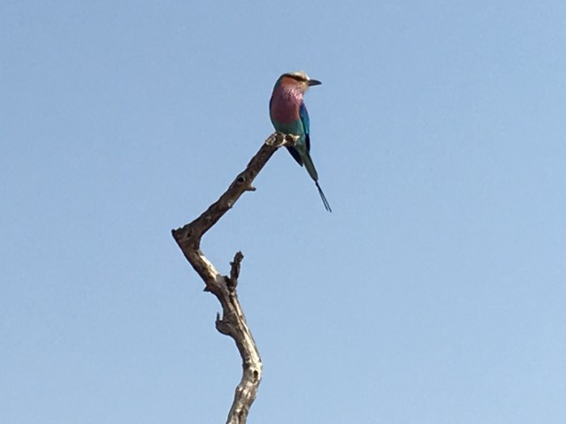 Once again the drive started out slow, without us seeing much, but it was good to see places we hadn’t been to before. Think it kept our eyes sharper. Betsy certainly demonstrated that, as we had barely begun to pull away from the building when she said “there’s an elephant right there!”, Pointing up and off to the left. I don’t think Leonard believed her, but he drove in that direction and lo and behold, right there almost next to the lodge were three elephants, including one with a missing tusk. A good start.