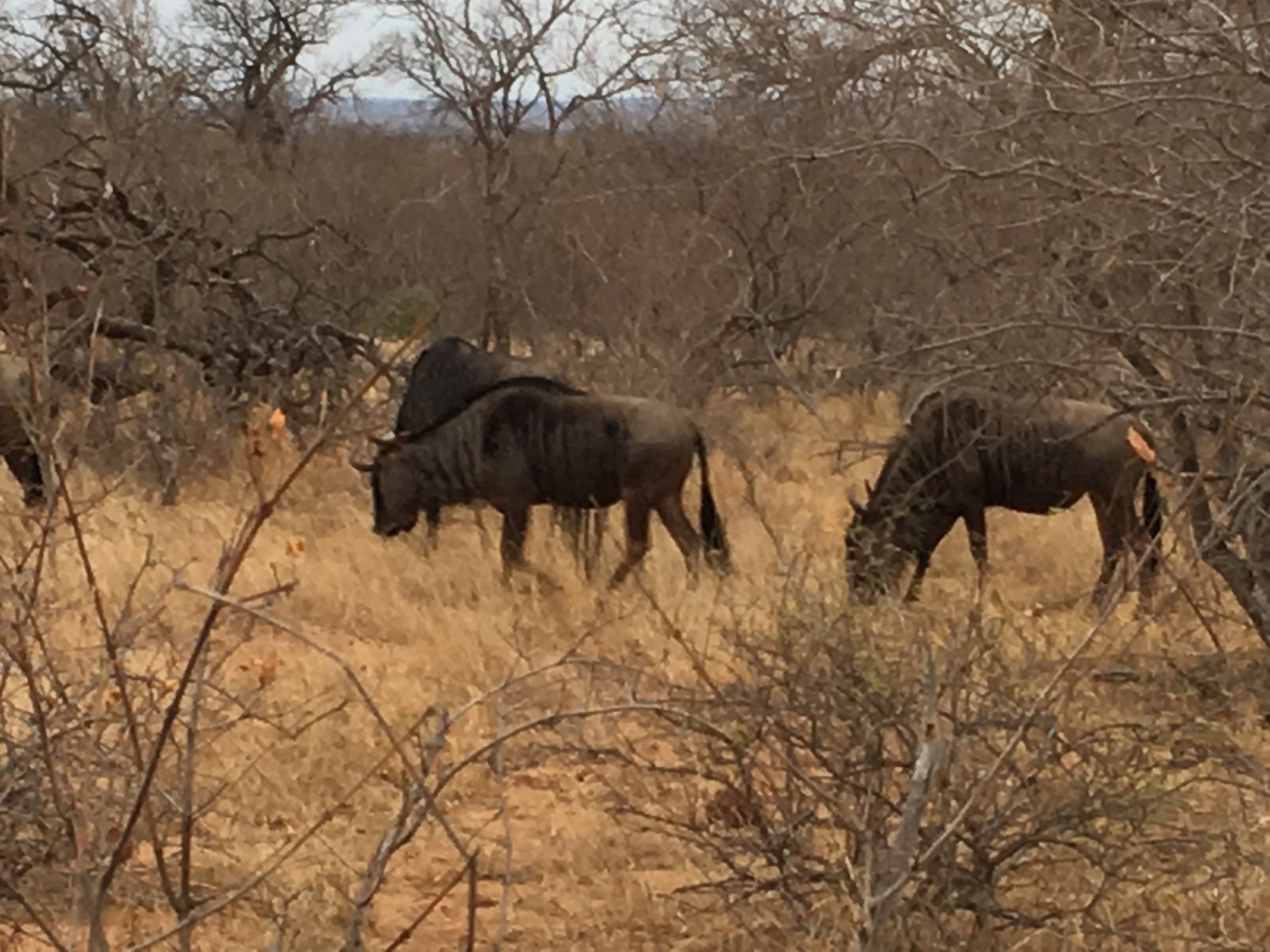 We thought that was a good evening but then wait! More was to come. We came upon our first wildebeest! Now there’s a mixed up animal. Brian said ,” there’s an animal that was put together by committee”. We were told the bushmen also think that they were made from left over animal parts during creation. They looked like part horse, part buffalo, part zebra. Quite funny in appearance. The ones we saw we were told are a resident group, which don’t do the massive migration like one sees on nature shows.