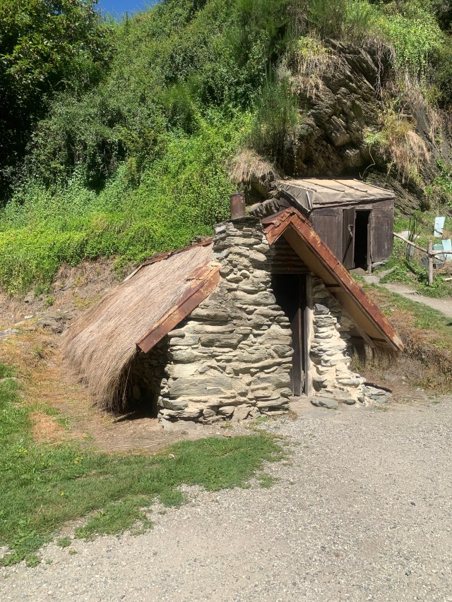 Today we chose to drive north a bit to the historical mining town called Arrowtown. In the 1860’s gold was discovered which brought in all sorts from around the world, including a good number from China. We had a pleasant drive to the town and snagged a parking spot. As we were standing there trying to determine how long we were allowed to stay there based on the parking signs we’re beginning to get the hang of, along came the parking guy marking tires. Well, we decided we ought to get the info straight from the horse’s mouth, so we inquired of him the details. He couldn’t have been sweeter! He stated that normally it would be two hours, but he said ” To be honest, I only come by here once in the morning and once in the afternoon and I really don’t like to write tickets. I just like to have this walk as my office, so stay as long as you like!” And with that he continued on his way marking tires but distinctly skipping ours. Yay us!