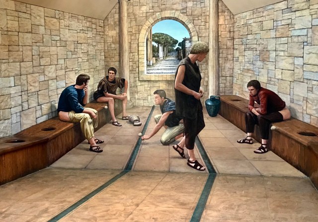 Having a good deal of the afternoon remaining we decided to drive further north to Lake Wanaka. Well, I didn’t have any idea what I was getting into, which is good, or I would never have driven the Crown Range Road. It was nothing but hairpin turn after hairpin turn, up and up and then the same thing but down and down! We were laughing at the road shown on the GPS was nothing but one s curve after another. We finally reached the lake which was beautiful, but soon headed back to Queenstown, but this time by a different route. Before we got too far though we made a pit stop at a puzzle place. Heading to the bathroom we found a historical diorama depicting a Roman bathroom. Then, in the actual bathroom we found directions for all the Asians on how to use the western toilets. We find amusement anywhere.