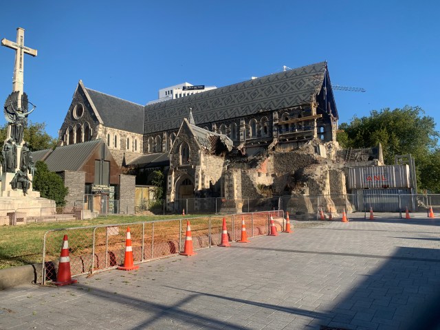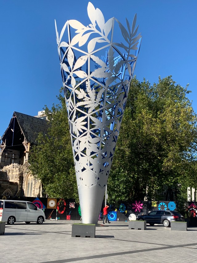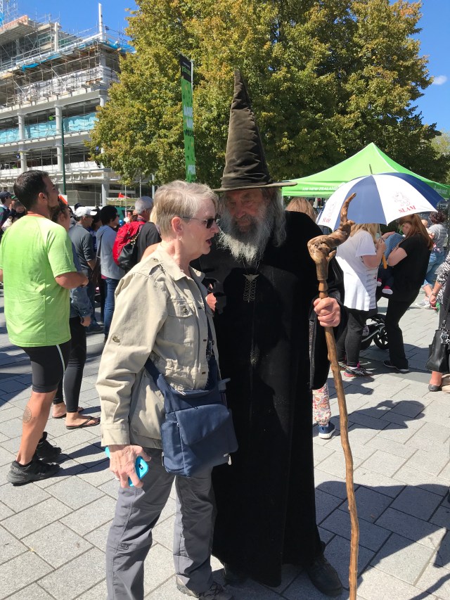 After that effort we easily found the first tram stop and began a gentle ride around the city center in a vintage 1934 tram with a fun driver/guide. After a few stops we got off at Cathedral Square as it was “food truck Friday” and that sounded like a great lunch option. We checked out all the “trucks” which were mostly small, cute trailers. While walking around we looked up and spotted Gandalf! No kidding! There was the grizzled old wizard complete with his wood staff. I sidled up to him to ask what he was up to…. He told me he was staying away from the government and only supporting the “arts”. Hmmmm…i decided it was best to allow him to wander on so I went for lunch. I opted for falafel “donuts” and Chinese veg bun. Delicious. We saw the devastation of the 2011 earthquake in stark reality at the cathedral. I’m glad I was able to see it and the rest of the city in 2007. But they are doing a remarkable job of rebuilding with the earthquakes in the forefront of how they are handling things.