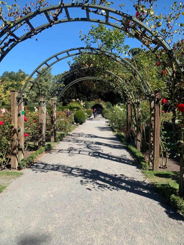 From there we walked to the front of the botanic gardens where we got on a small tour cart. A very knowledge driver slowly drove round telling us about all the trees and beds, plus we got to stop for a quick look around the conservatory, with a rain forest like room, one of mostly begonias, one with cacti and a small orchids room as well as the rose garden. Once we finished and everyone piled out we stayed to chat a bit with the guide. He was most interesting, saying he only did this when he was back in NZ from his overseas work and only then a few times a month. But you could tell he loved it.