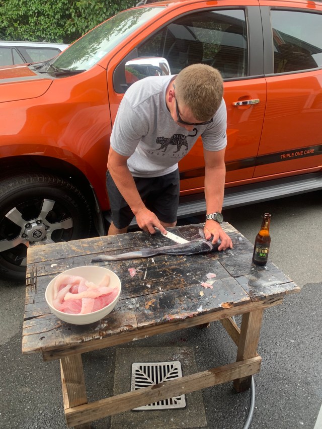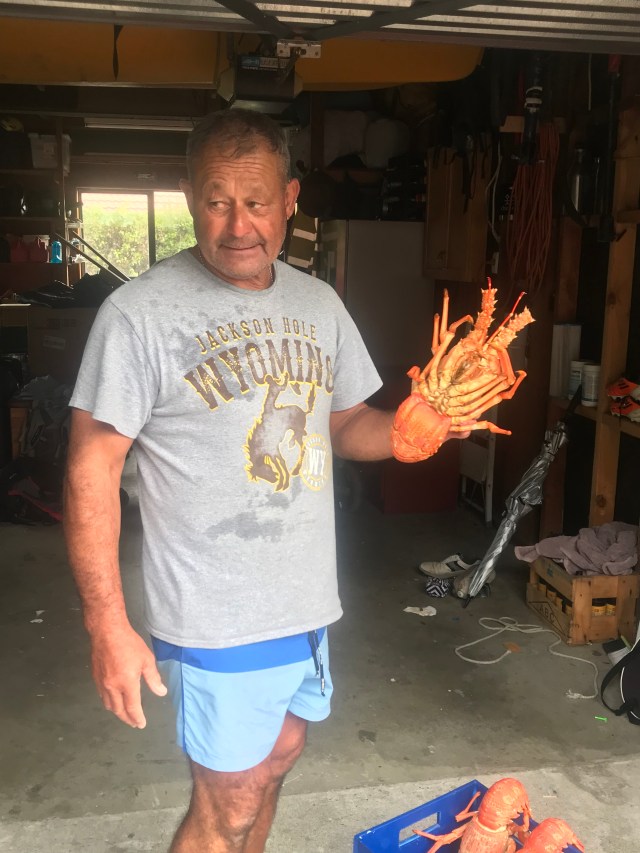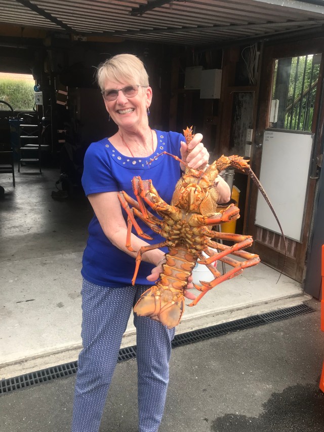 By late afternoon we drove into Nelson and found our Airbnb. The host turns out to be a Seattle native! She married a Dutch Maori years ago and has lived here ever since. Not long after we arrived her husband and eldest son returned from a day on the water. And what a catch they brought back! The son was filleting all the blue cod (which we’ve eaten several times in our fish and chips) while the dad was cooking up the crawfish. Now when I think of crawfish I think off the ones like large shrimp down in Louisiana, but no! These were huge! The largest he called the granddad, saying he was most likely about 70 years old and weighed 9 pounds. He gave us a taste from one of the legs and it was delicious.