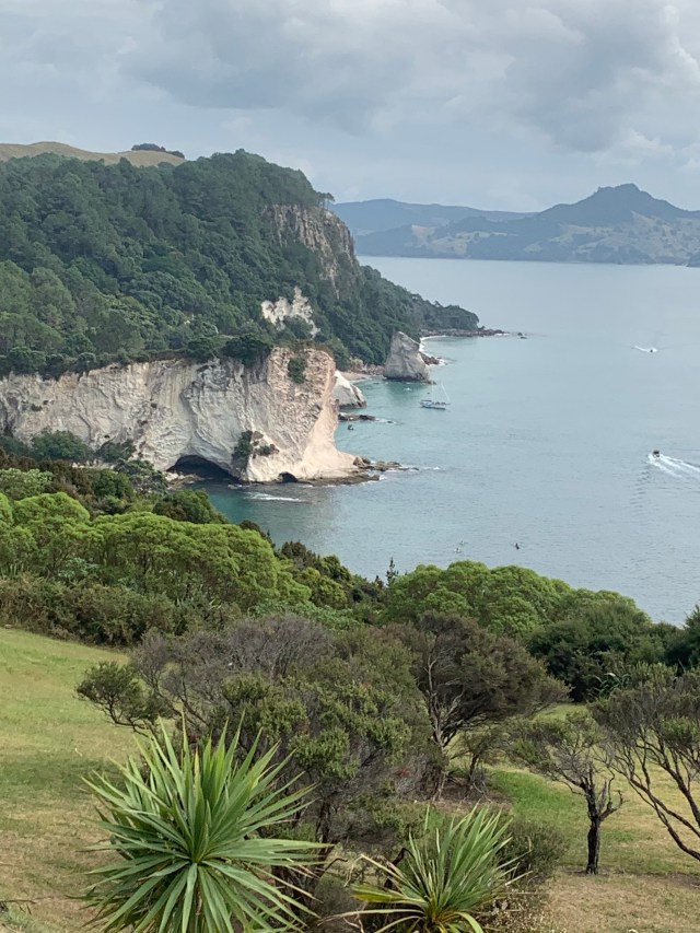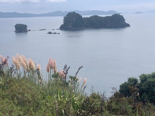 Once done we headed up the coast to Hahei, where we were hoping to get a chance to see Cathedral Cove. There’s no parking out there so we had to stop at a free car park, then pay for a shuttle bus to take us in. Unfortunately once we got there we learned that the water taxi we were planning on taking to the Cove was not running today. Darn the bad luck. But the good news was that we had beautiful views from there and, in a month of traveling here, that was our first disappointment. Not bad. We bought lunch from a food truck, eating and enjoying the view. We eventually took the shuttle back to the car park and headed back to the house.