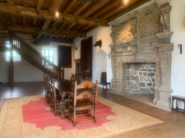 Packed up we headed off toward Donegal town. We reached there rather quickly, considering we weren’t on the typical minor roads we somehow find to explore places. We found a place to park and walked around the small town center, popping in and out of a few shops. We were waiting for the Donegal Castle to open its doors. By 10, they did just that. We’ve been happy that we early on bought ourselves Heritage passes, which gives us access to many historical places. The clerk stated that the first tour would not be until 1030 and it was with school children. No thanks! We did our own self-guided tour, thank you very much. The castle was originally built in 1474, but was rebuilt in 1623. It had a spiral staircase, going up towards the right supposedly to aid in fighting off intruders. Up those stairs was a magnificent Great Hall with an amazing, huge fireplace and a tremendous coffered ceiling.