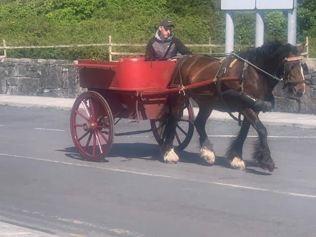 We carried on to the pier, waiting in the luxury of a wind shelter until the boat arrived. Once again the Happy Hooker was our transport back to Inisheer, where we moved from that boat to a larger one to carry us back to Doolin. We arrived earlier than we expected, just after 1700 and were happy to see our car still there in the lot…. When we had left it yesterday the parking fee was a tad confusing, so we hoped for the best. We were in luck. We had just a short drive to the hostel we had booked. We checked in, left our packs, made a few quick sandwiches with the food we still had to tide us over and we headed out.