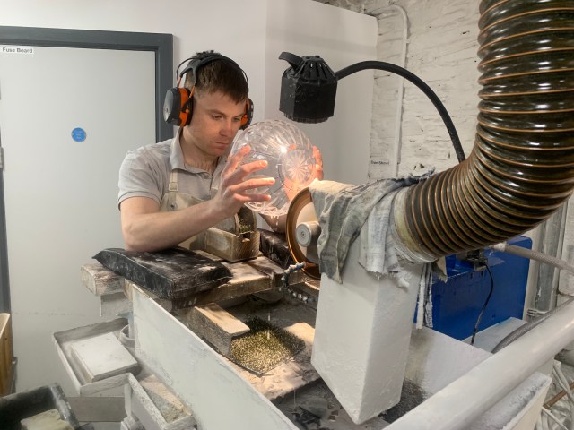 We took the motorway down so it was a fairly quick trip, found a car park along the waterfront and began walking. Our first stop was to the Waterford Crystal factory tour. I thought the kids would humor me on this, as I’m the one who has all the Waterford crystal at home. But even they enjoyed seeing what it took to create the pieces. The tour took us through the process from blowing the glass, into the kiln, smoothing the top edges, marking the design, and cutting the glass.