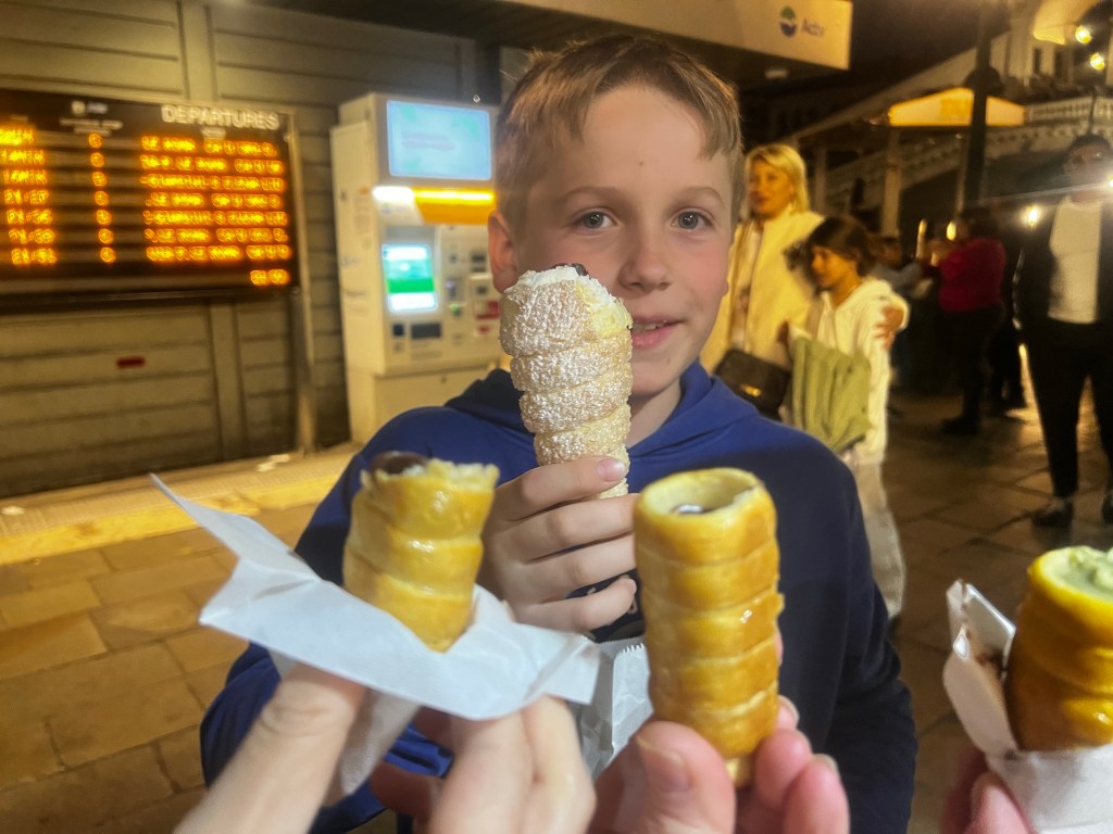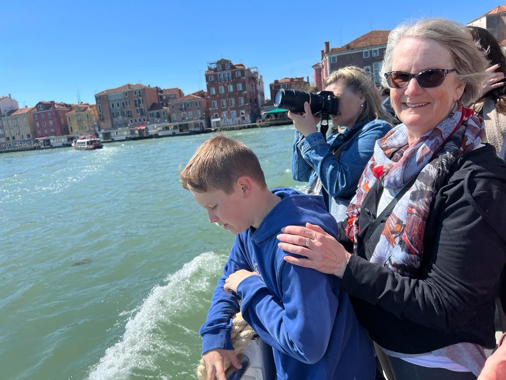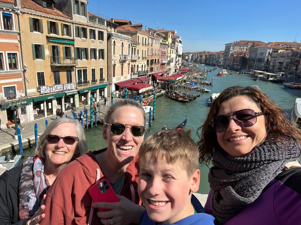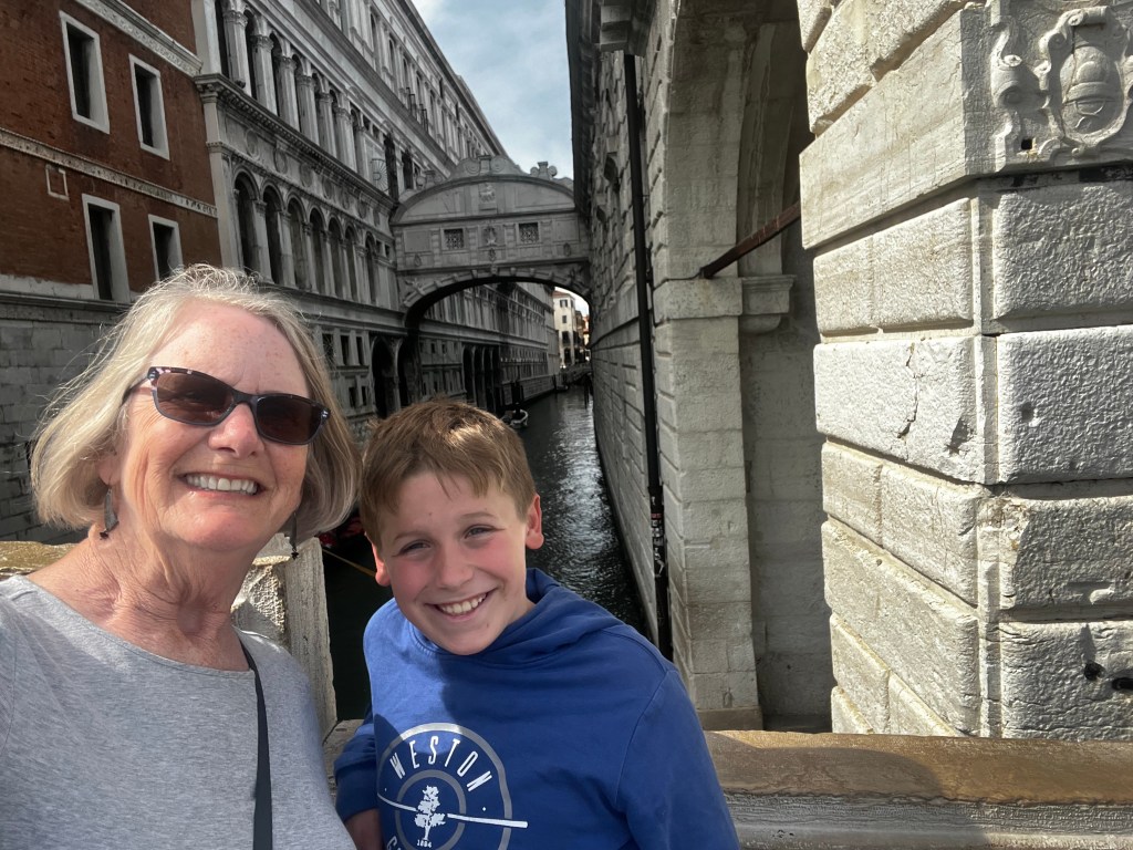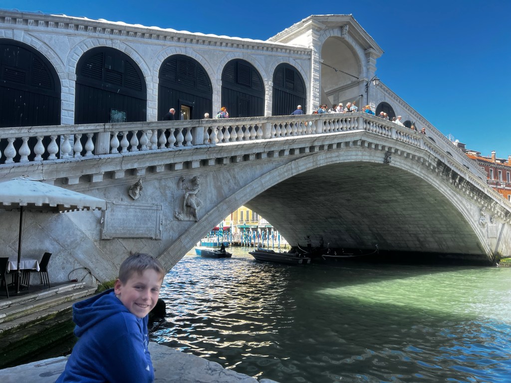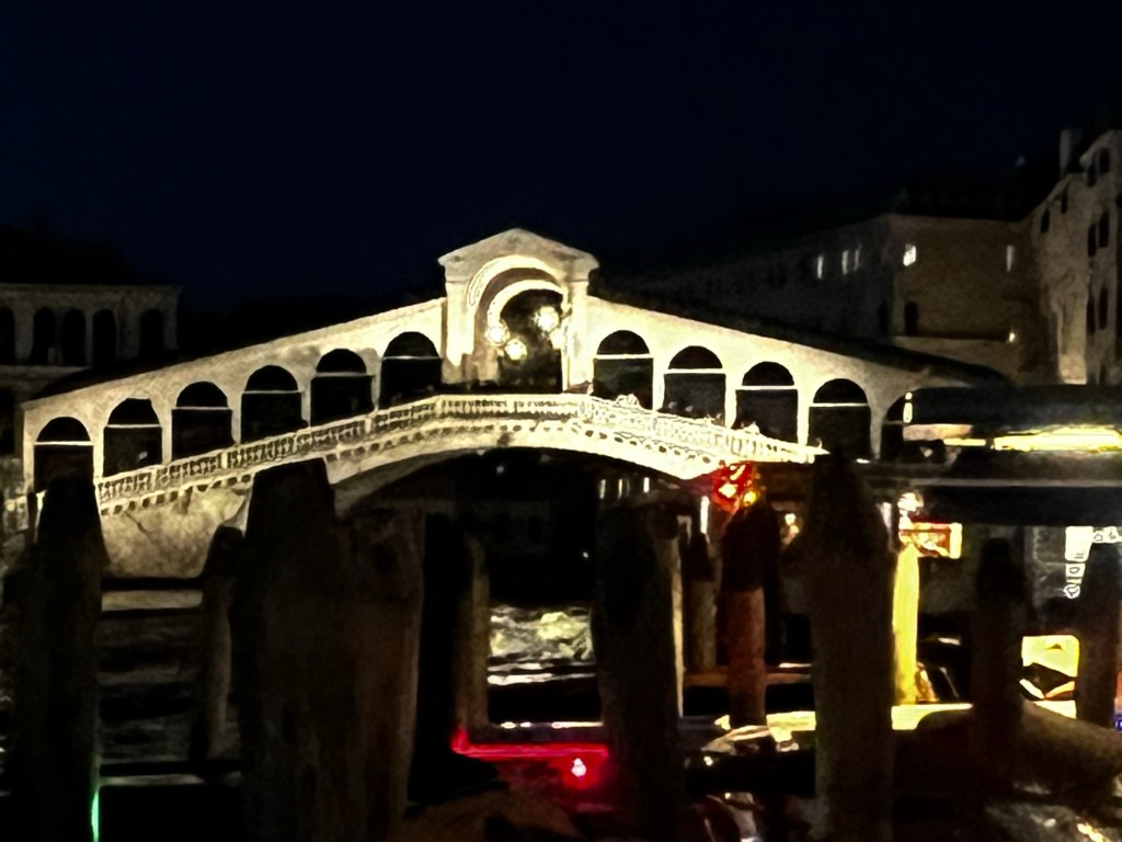 Dinner was in this fabulous little restaurant off of a large square. We had a marvelous meal, with not a single moment of being rushed. Jayne had brought the spinning, flying toy Silas got in Florence and the large plaza was the perfect place for him to fly it after we ate. Gulgun had wanted tiramisu for dessert but unfortunately yet were out of it so we walked off looking for other dessert options. We ended up getting canolis but seeing the Rialto bridge at night was actually the evening’s highlight.