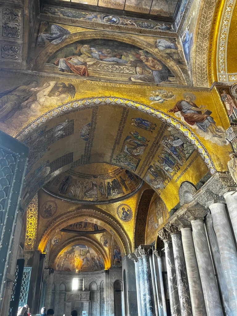 We started out by heading to the Campanile, where I thought I had booked us tickets to climb to the top. But it was the first time that the tickets got messed up. Though Tiquets, the app I used to purchase tickets ahead said it was for the Campanile, it turned out it was for St Mark’s Basilica, with the Pala d’Oro. We decided it was meant to be. So we skipped the climb and went to the Basilica. It was totally remarkable, even for us non religious ones.