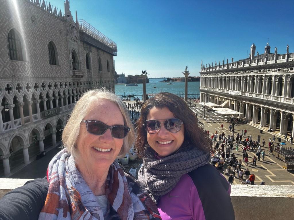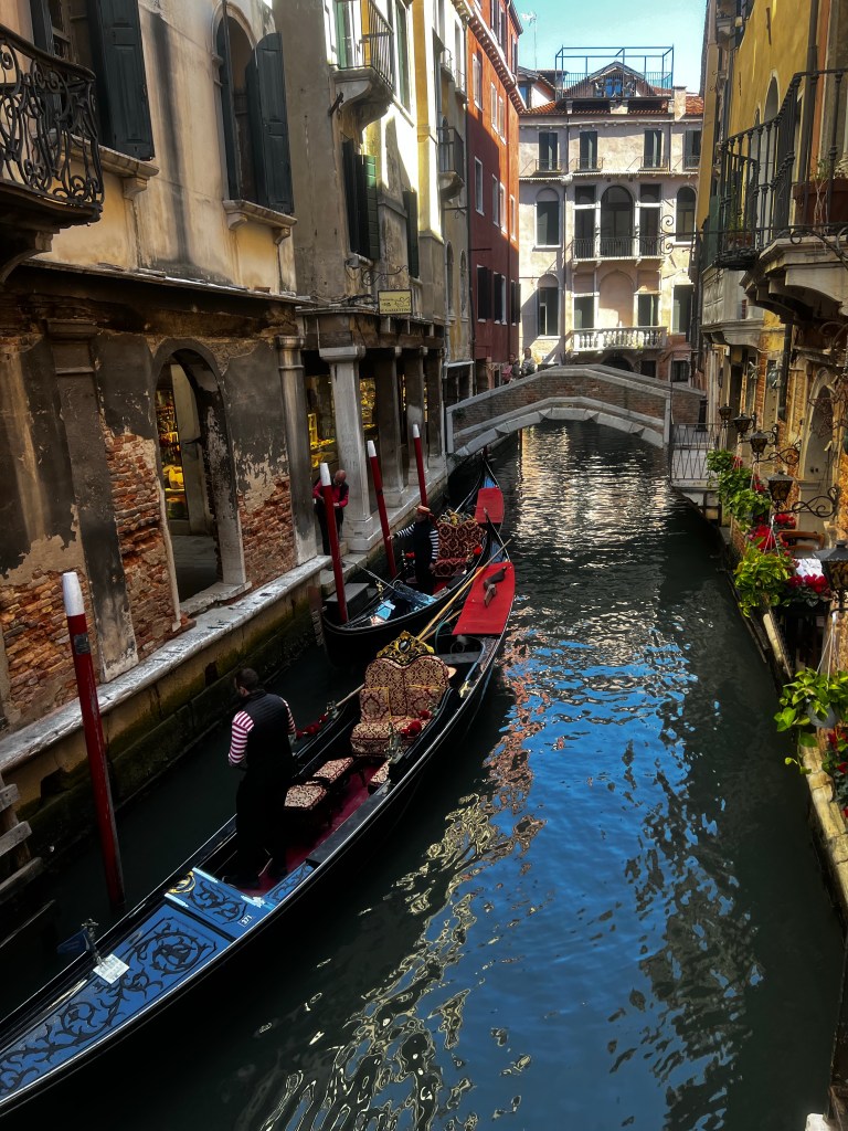 We began the day going downstairs for breakfast. Best hotel coffee yet! Our hotel is near St Mark’s Square with a canal right behind us, with lots of gondola floating past, complete with serenading musicians.