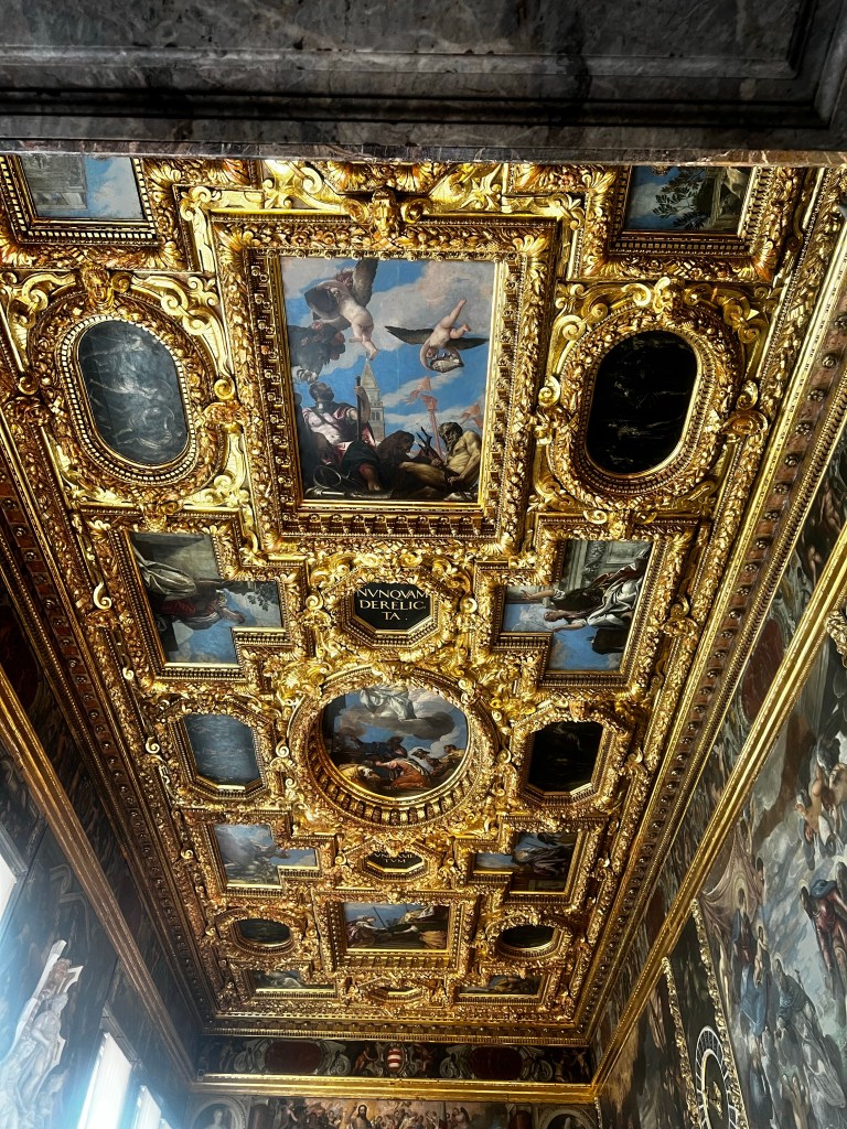 Then it was on to our last tour of the day, the Doge Palace. What an amazing place. Totally overwhelming in the decorations and artwork. We even walked through the prison and across the Bridge of Sighs, where prisoners got their last glimpse of Venice before being imprisoned or executed.