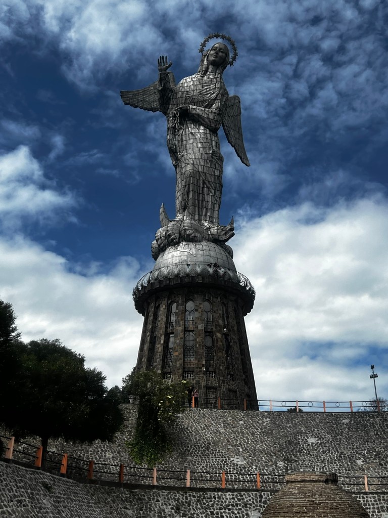 14 of us that will be on the Flora were teamed up with our guide and bus. Our first stop was up atop a huge hill overlooking the city and the surrounding mountains with a beautiful statue representing the Virgin of the Panecillo. It’s rather striking as she seems to be protecting the city, though the hill’s history was as a military fort.