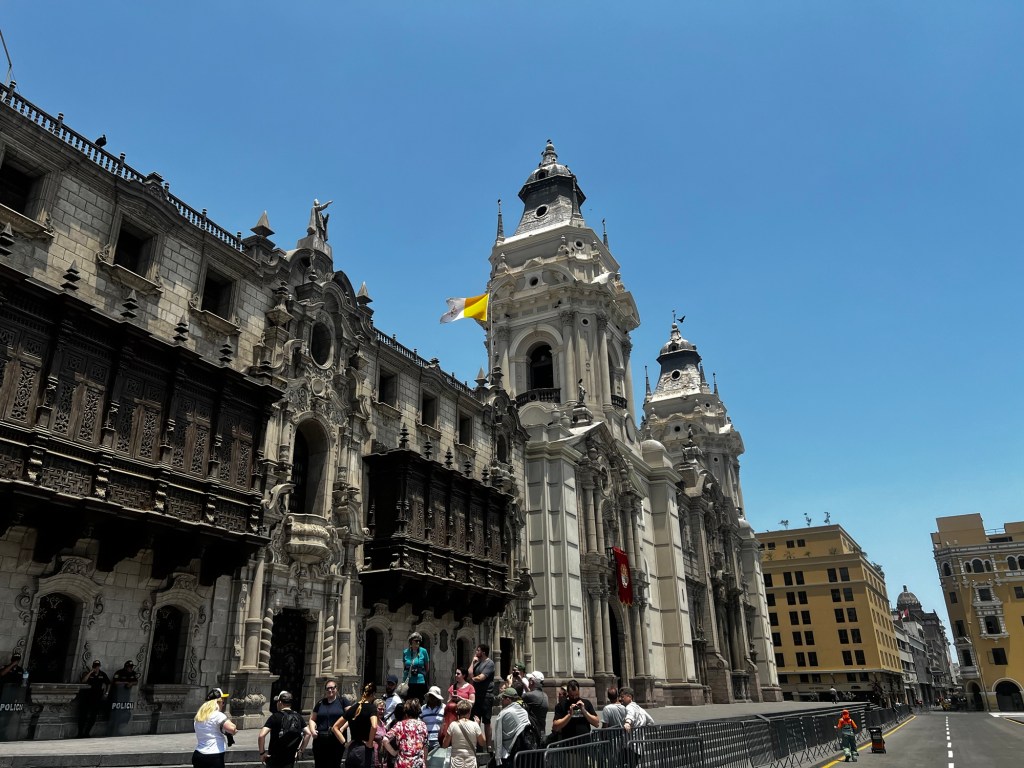 Soon the bus was ready and Ara, our main guide was directing us on board. We were driven through terrible traffic, where I’m happy I was an oblivious passenger. They broke us into two groups, each with a separate local guide. We followed Alicia, who we referred to as the “heart” of the group . They dropped us off in the historic district where we began by going to the Saint Francis Convent/Monastery. The building was old and rather lovely but we were allowed no photos. We did tour the catacombs with tunnel after tunnel and bones upon bones of former monks and other religious people. Creepy but not nearly as eerie as the Capuchin Crypts we visited in Rome.