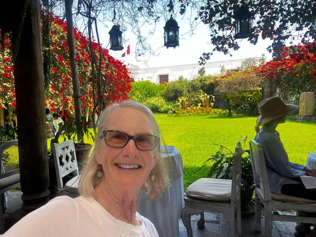 We were eventually back on the bus and driven to a gorgeous museum locale for lunch. It was set in a flower laden garden with a lovely breeze wafting through the al fresco dining area. Considering that Lima gets about 2”/year of rain it’s amazing that there’s as many flowering trees and plants that there are.