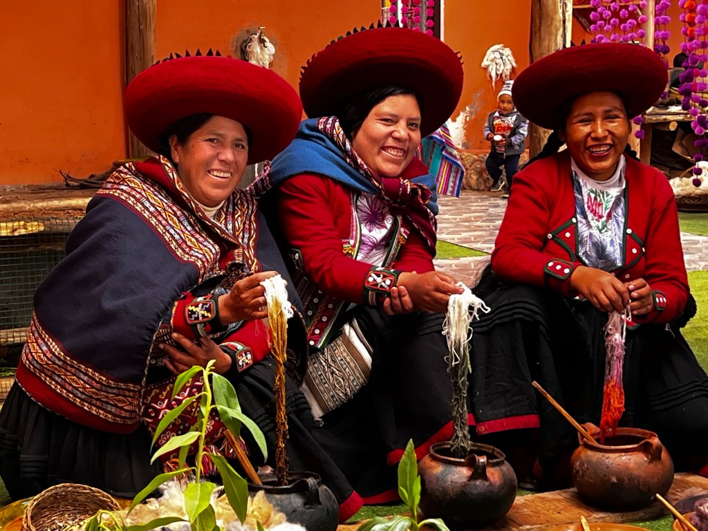 But best of all was walking in and seeing hanks of dyed alpaca. I was distracted in basically petting it. Soon they had us seated so the local women could describe how they dye the wool with natural materials. They had one who was using a drop spindle to spin the alpaca and another one weaving a tapestry. It was so delightful to see women doing handwork that I also love to do.