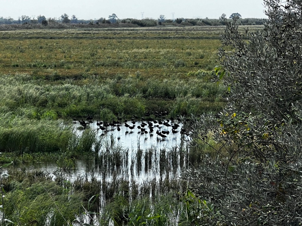 Soon we came across a spot with some marshy water and to Mandy’s delight it was filled with hundreds of black birds. Turned out they were glossy ibises. Beautiful as they waded and beautiful as they flew off as a passing train startled them.