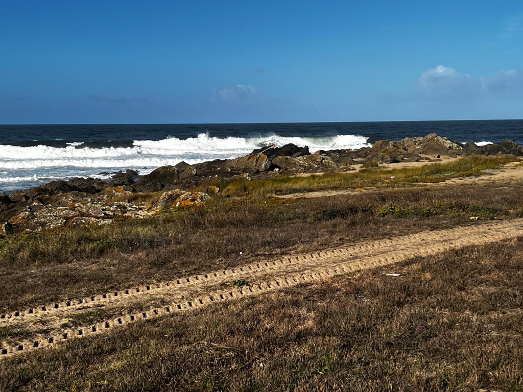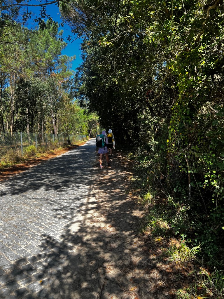 But then we veered off the boardwalk into a path called the Litoral Norte. A nice change of pace in the surfaces and into the trees and farmland. The wonderful smell of eucalyptus surrounded us. It was also our first glimpse of hills in the distance.