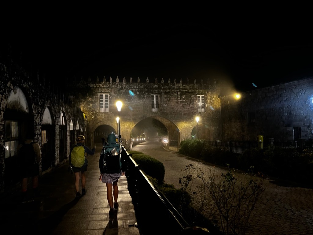 Which we did. Unfortunately. It just got worse. The rain poured. The gusts of wind pushed us everywhere. Our umbrellas became too difficult to keep in our hands free configuration. Even holding it separately became so difficult I couldn’t use my poles at the same time. Which was a dilemma as I can hike the hills better with the poles. The wind gusts were the strongest we’ve dealt with yet. We struggled to keep them up and for me to stay upright. Eventually I gave up and decided I couldn’t possibly get more wet. I closed the umbrella and used the poles. Mandy reminded me that if it were easy then everyone would do it. Ultreia! Onwards!