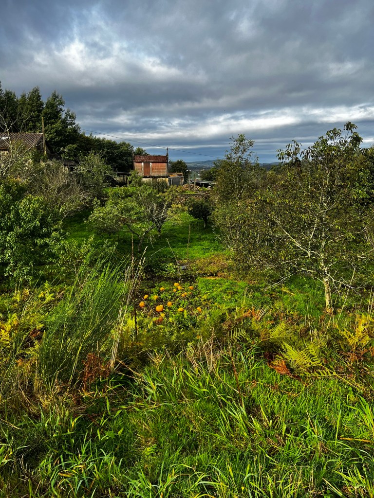 We found a cafe up a huge flight of stairs, but it was worth hoofing up to it. We had coffee and toast. Got to chat with a few pilgrims. Which is good because all the people we had met on the way to Santiago have left. Now hikers on this section are from all the Caminos which converged on Santiago. Feels like we’re starting over. With only a few days we sort of hesitate to connect. But you’ll soon see that doesn’t last!