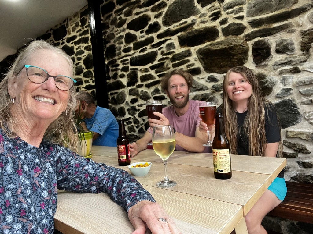 We eventually did so, including getting in the queue for laundry. While that was underway we opted for some beer and wine with our new Canadian friends. A father and son. And the father was a loggie in the Canadian Air Force.
