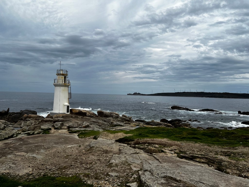 Afterwards I wandered around the sea front then up the hill to the lighthouse. Large rocks as at Finesterre but easier to walk over. Waves crashing but very peaceful.