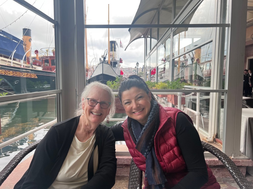 They took us to a maritime museum of sorts with a lovely restaurant along the Halic estuary. We had a great variety of Turkish appetizers and wine, all while enjoying the pleasant weather and having stray cats wander around. Seems that’s quite an issue here. We enjoyed catching up then went out to see some of the old boats and aircraft.