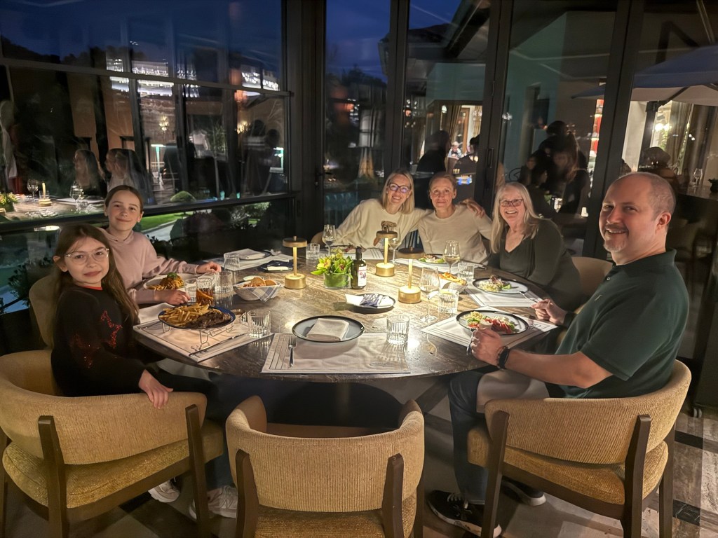 Fortunately it was nearby, as we were tired, but we managed to perk back up with wine and a delicious meal. While we were between coarser the girls went out to inspect the grounds. All in all a great start to our journey. We happily fell into bed once back at the house to be ready for the next day’s adventure.